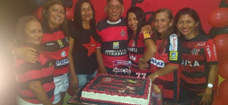 Durante as comemorações, nas cores do seu time de coração, o Flamengo, a família estava presente, bem como parentes e amigos.