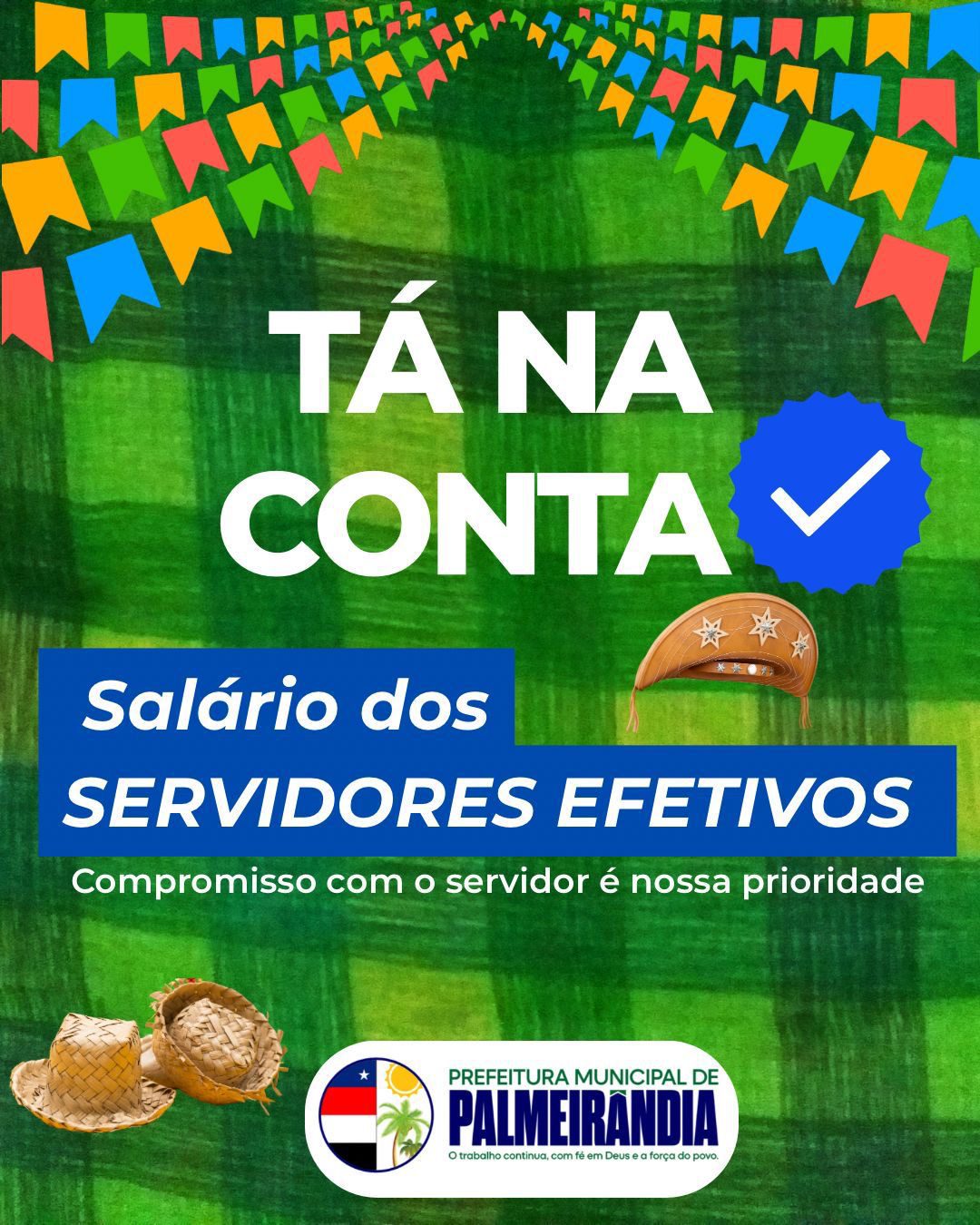 Com o lema “Compromisso com o servidor é nossa prioridade”, a Prefeitura Municipal de Palmeirândia reafirma sua política de responsabilidade fiscal, transparência e respeito com os recursos públicos, mantendo em dia os compromissos com quem contribui diretamente para o crescimento do município.